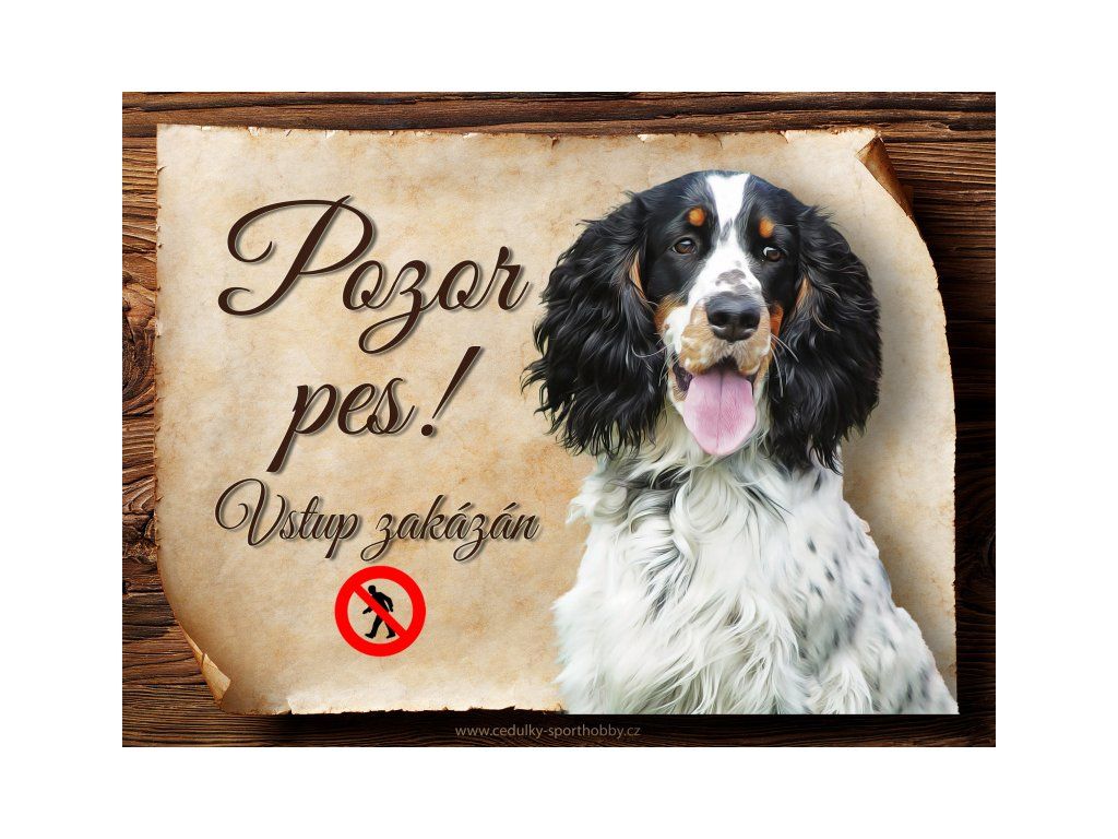 Cedulka Anglický špringršpaněl III - Pozor pes zákaz/CP1626