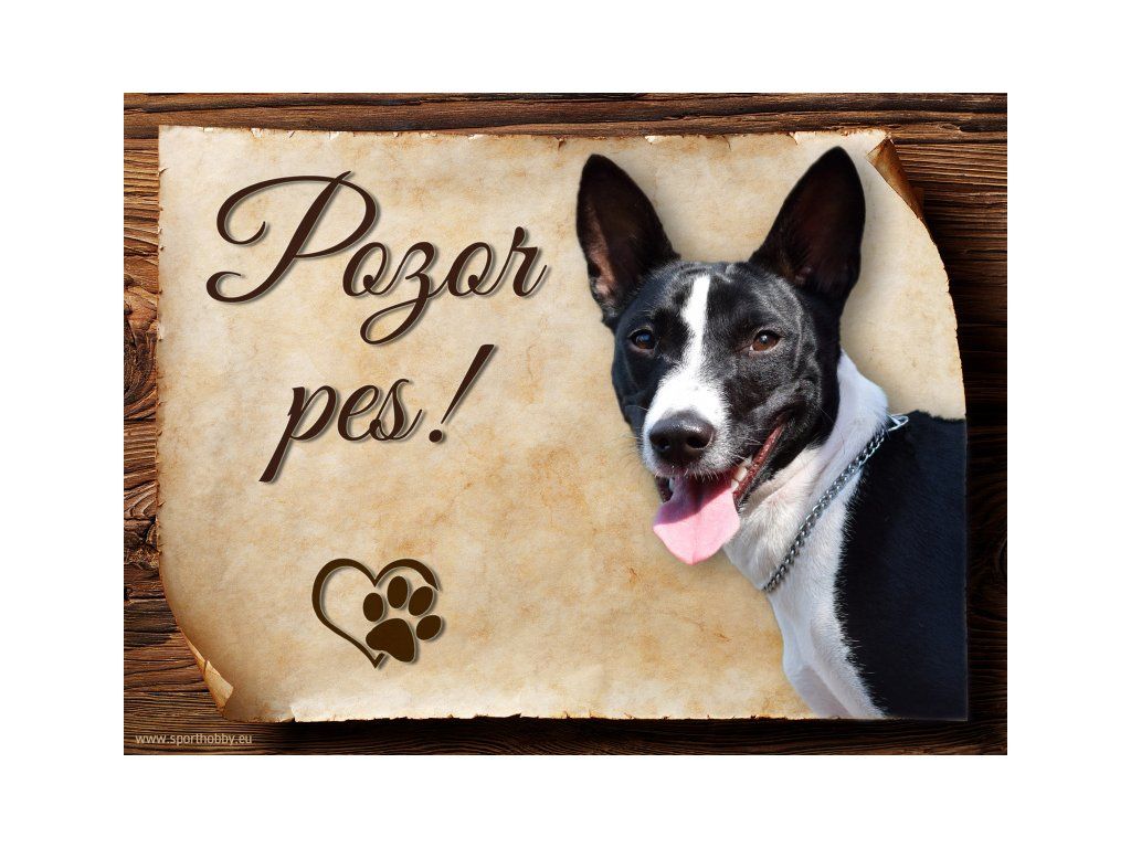 Cedulka s Basenji II, hliníková s nápisem "Pozor pes!" Kovová výstražná venkovní cedulka oznamující to či ono, že se ve vašem obydlí může návštěvník setkat s vašim čtyřnohým miláčkem a jeho teritoriem. Velikosti těchto cedulek jsou 15x11,25 a 20x15 cm. Cedulky jsou tištěny sublimační technologií Grawerton přímo na plech. Cedulky dodáváme běžně se zakulacenými rohy. Pokud budete chtít na cedulku vlastní text, napište nám jej do poznámky.