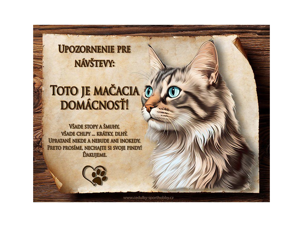 Tuto cedulku vyrábíme v češtině i slovenštině. Vtipná kovová cedulka s nápisem "Kočičí domácnost ..." vyobrazení plemene Americký bobtail 2. Kovová - hliníková cedulka vhodná pro umístění do domu i na venek. Velikosti této cedulky je 20x15 cm, má zakulacené rohy. Cedulky jsou tištěny sublimační technologií Grawerton přímo na plech.