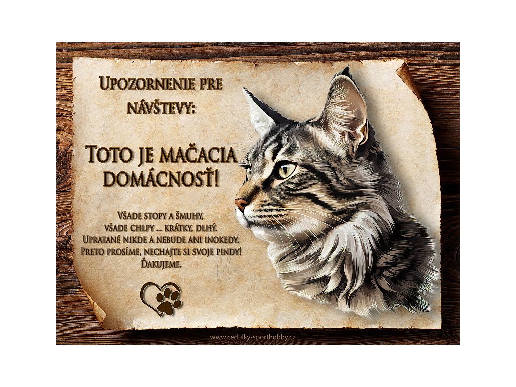 Tuto cedulku vyrábíme v češtině i slovenštině. Vtipná kovová cedulka s nápisem "Kočičí domácnost ..." vyobrazení plemene Americký bobtail 3. Kovová - hliníková cedulka vhodná pro umístění do domu i na venek. Velikosti této cedulky je 20x15 cm, má zakulacené rohy. Cedulky jsou tištěny sublimační technologií Grawerton přímo na plech.