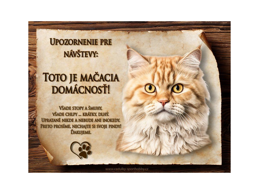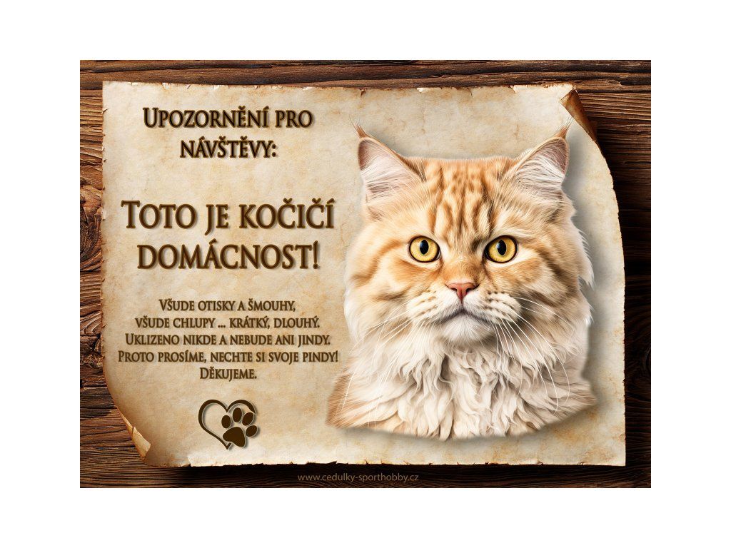 Tuto cedulku vyrábíme v češtině i slovenštině. Vtipná kovová cedulka s nápisem "Kočičí domácnost ..." vyobrazení plemene Selkirk rex 2. Kovová - hliníková cedulka vhodná pro umístění do domu i na venek. Velikosti této cedulky je 20x15 cm, má zakulacené rohy. Cedulky jsou tištěny sublimační technologií Grawerton přímo na plech.