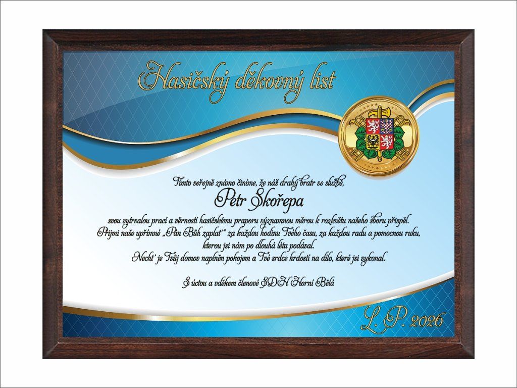 Poznámka: Uvedený text na plaketě je pouze ilustrační. Vlastní text si můžete libovolně navrhnout po vložení do košíku nebo jej uvést do poznámky v objednávce.