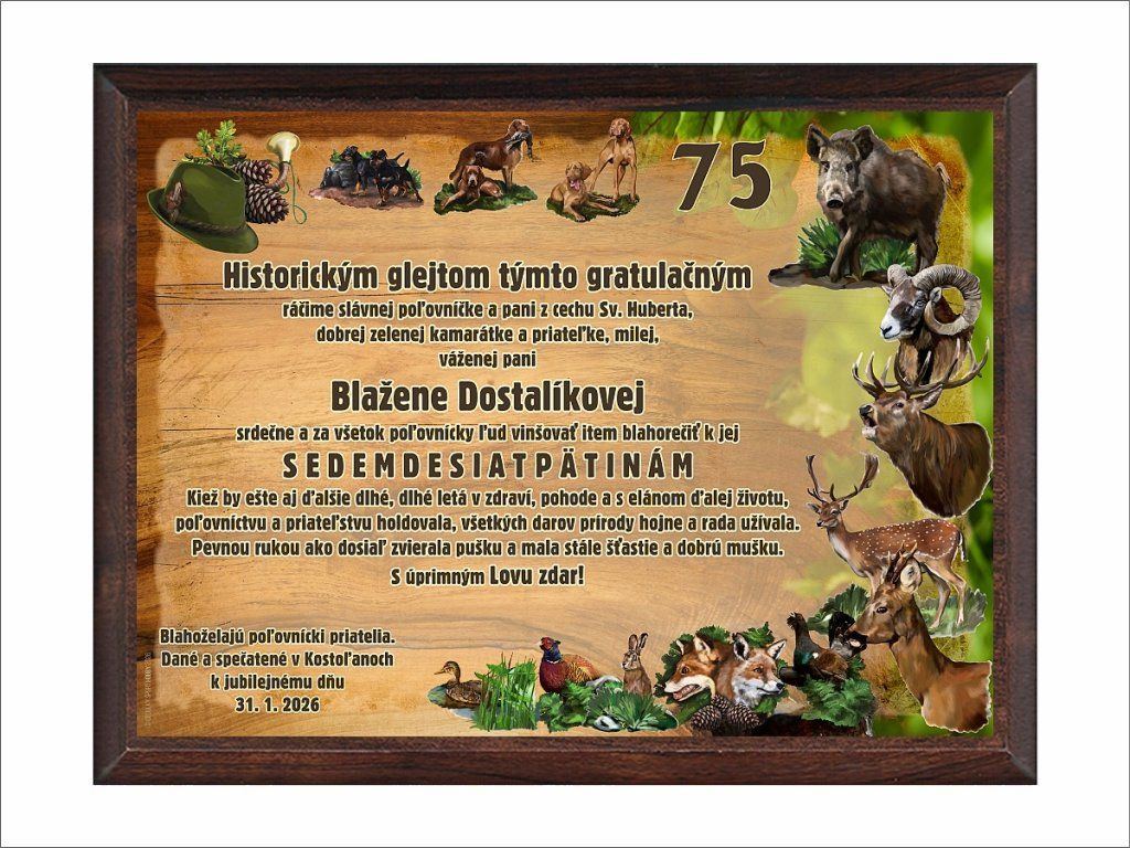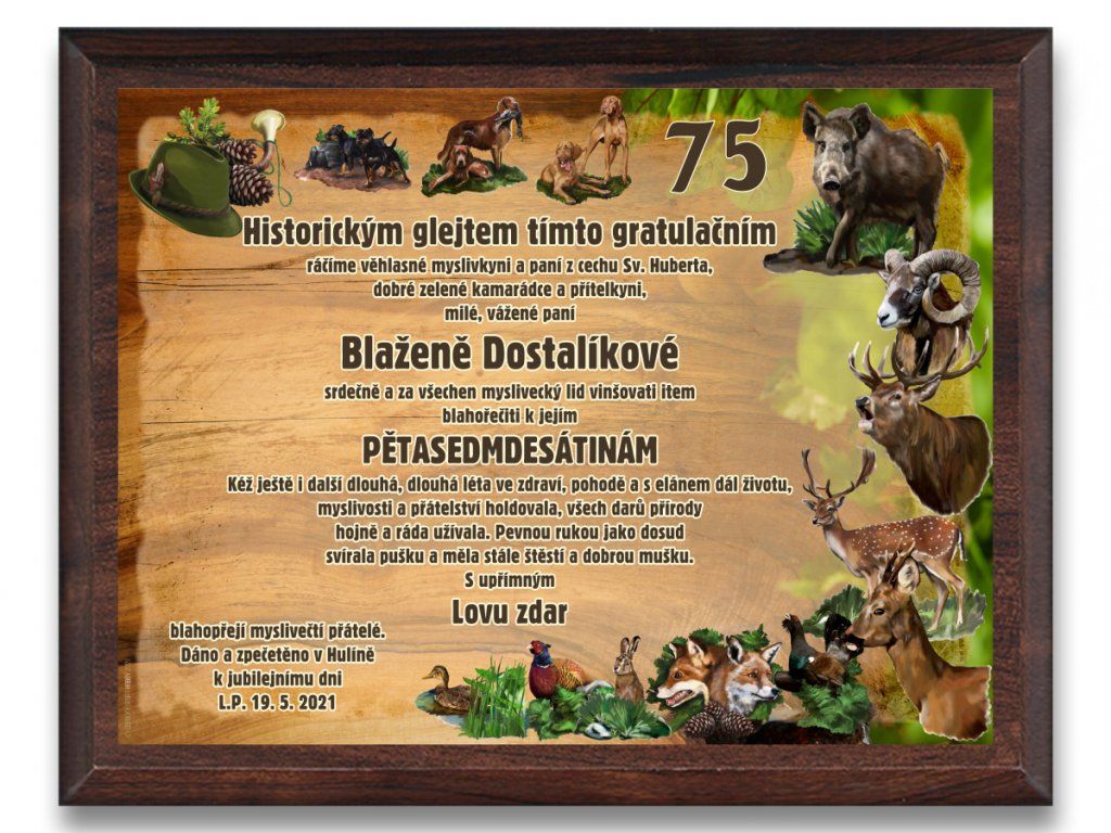 Hledáte důstojný způsob, jak věnovat originální dar k jubileu? Naše samostatné desky v luxusním provedení ořech tvoří dokonalý základ pro vaše individuální nápady. Tato kovová deska je umístěn na mdf podložku v provedení ořech, která je v ceně výrobku. Je možné zavěšení na stěnu, nebo postavení do stojánku. Text je pouze informativní - smyšlený. Lze jej libovolně editovat po vložení do košíku a nebo uvést do poznámky.