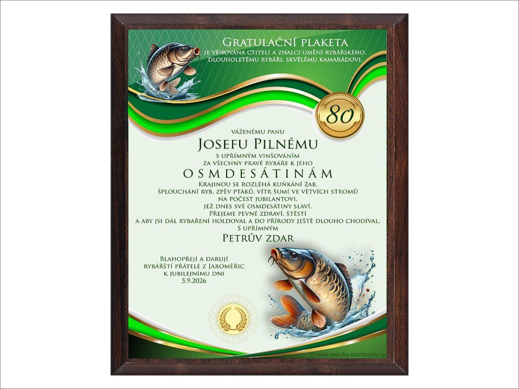 Hledáte důstojný způsob, jak věnovat originální dar k jubileu? Naše samostatné desky v luxusním provedení ořech tvoří dokonalý základ pro vaše individuální nápady. Tato kovová deska je umístěn na mdf podložku v provedení ořech, která je v ceně výrobku. Je možné zavěšení na stěnu, nebo postavení do stojánku.
