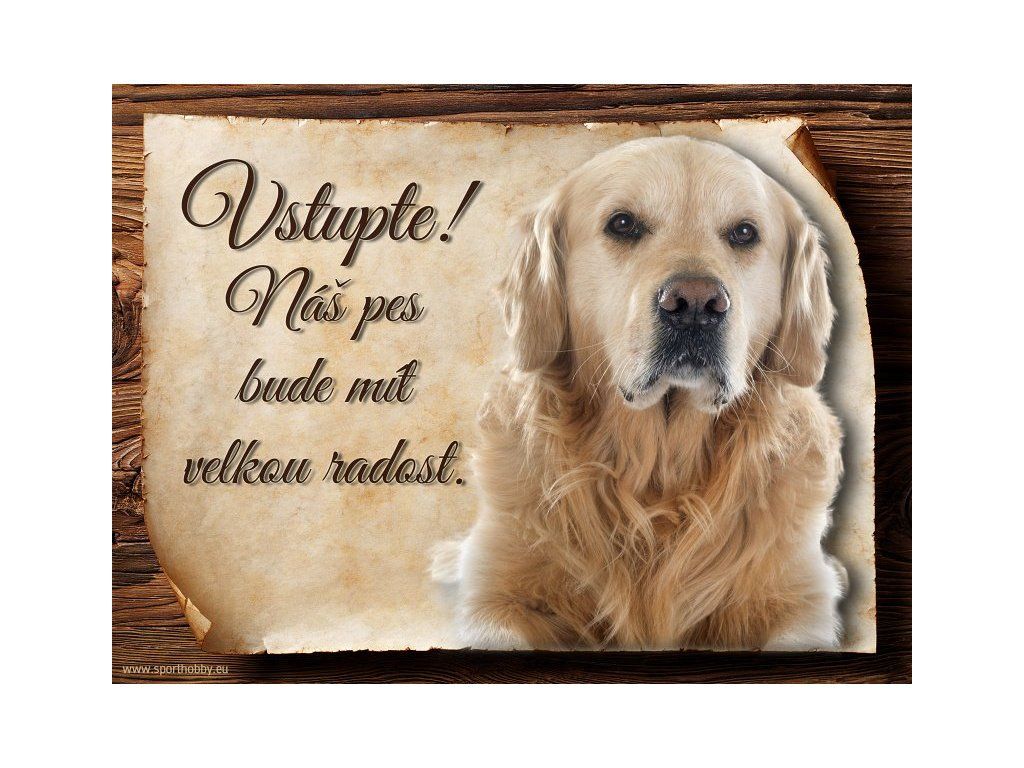 Cedulka Retrívr II, hliníková s nápisem "Vstupte! Náš pes bude mít velkou radost!" Kovová výstražná venkovní cedulka oznamující to či ono, že se ve vašem obydlí může návštěvník setkat s vašim čtyřnohým miláčkem a jeho teritoriem. Velikosti těchto cedulek jsou 15x11,25 a 20x15 cm. Cedulky jsou tištěny sublimační technologií Grawerton přímo na plech. Cedulky dodáváme běžně se zakulacenými rohy. Pokud budete chtít na cedulku vlastní text, napište nám jej do poznámky.