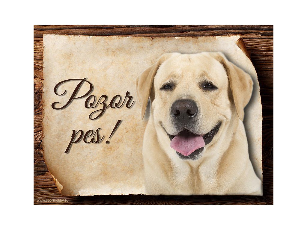 Cedulka Labradorský retrívr, hliníková s nápisem "Pozor pes!" Kovová výstražná venkovní cedulka oznamující to či ono, že se ve vašem obydlí může návštěvník setkat s vašim čtyřnohým miláčkem a jeho teritoriem. Velikosti těchto cedulek jsou 15x11,25, 20x15 cm a 27x20. Cedulky jsou tištěny sublimační technologií Grawerton přímo na plech. Cedulky dodáváme běžně se zakulacenými rohy. Pokud budete chtít na cedulku vlastní text, napište nám jej do poznámky.