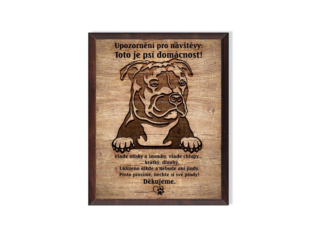 Obrázek s Stafordšírem je vytištěn sublimačním tiskem a umístěn na mdf podložku. Má stálé a syté barvy. Velikost obrázku i s podložkou je 25x20 cm