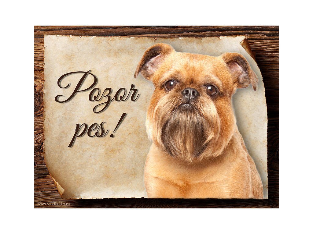 Cedulka s Grifonek, hliníková s nápisem "Pozor pes!" Kovová výstražná venkovní cedulka oznamující to či ono, že se ve vašem obydlí může návštěvník setkat s vašim čtyřnohým miláčkem a jeho teritoriem. Velikosti těchto cedulek jsou 15x11,25 a 20x15 cm. Cedulky jsou tištěny sublimační technologií Grawerton přímo na plech. Cedulky dodáváme běžně se zakulacenými rohy. Pokud budete chtít na cedulku vlastní text, napište nám jej do poznámky.