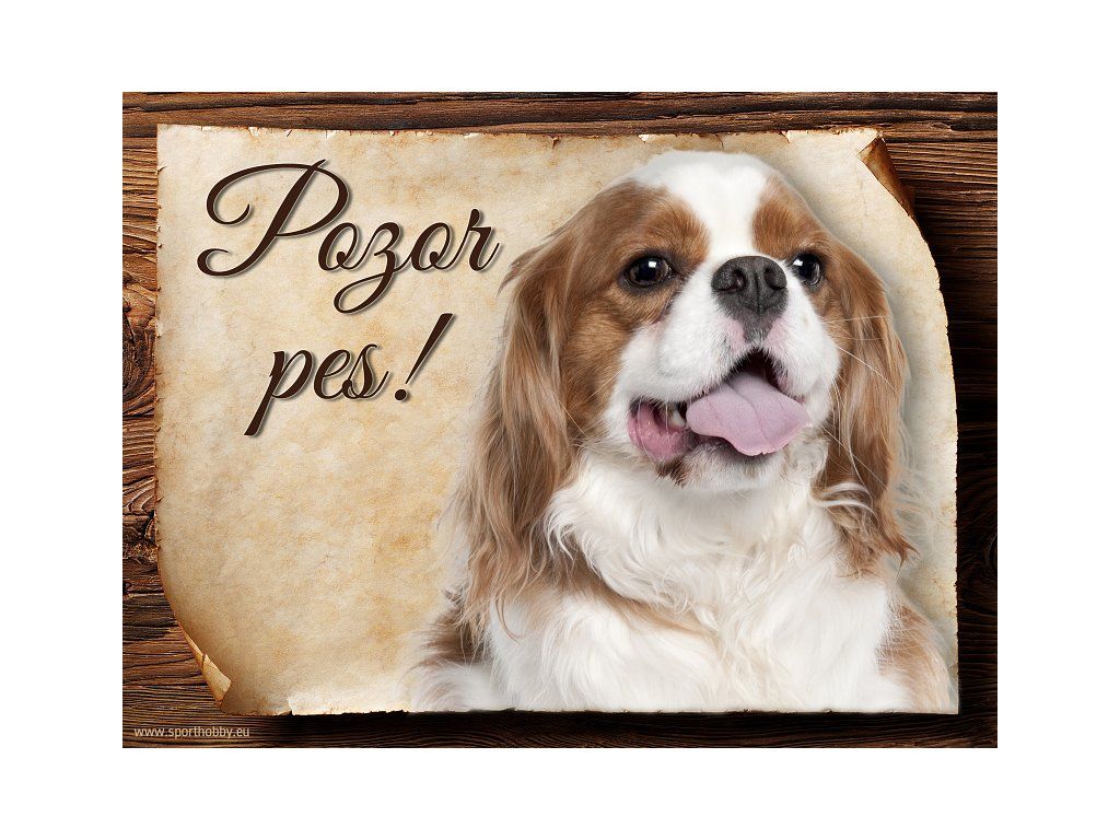 Cedulka s Kavalír King Charles španěl, hliníková s nápisem "Pozor pes!" Kovová výstražná venkovní cedulka oznamující to či ono, že se ve vašem obydlí může návštěvník setkat s vašim čtyřnohým miláčkem a jeho teritoriem. Velikosti těchto cedulek jsou 15x11,25 a 20x15 cm. Cedulky jsou tištěny sublimační technologií Grawerton přímo na plech. Cedulky dodáváme běžně se zakulacenými rohy. Pokud budete chtít na cedulku vlastní text, napište nám jej do poznámky.