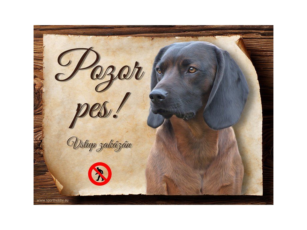 Cedulka s Bavorský barvář, hliníková s nápisem "Pozor pes! Vstup zakázán!" Kovová výstražná venkovní cedulka oznamující to či ono, že se ve vašem obydlí může návštěvník setkat s vašim čtyřnohým miláčkem a jeho teritoriem. Velikosti těchto cedulek jsou 15x11,25 a 20x15 cm. Cedulky jsou tištěny sublimační technologií Grawerton přímo na plech. Cedulky dodáváme běžně se zakulacenými rohy. Pokud budete chtít na cedulku vlastní text, napište nám jej do poznámky.