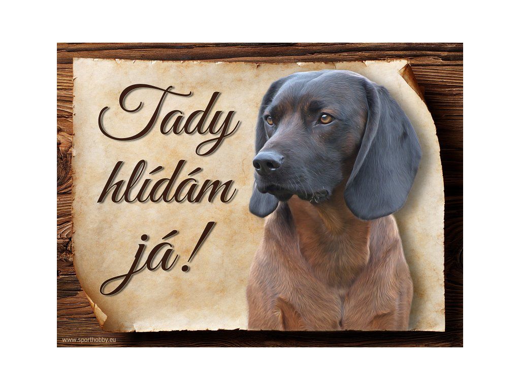 Cedulka s Bavorský barvář, hliníková s nápisem "Tady hlídám já!" Kovová výstražná venkovní cedulka oznamující to či ono, že se ve vašem obydlí může návštěvník setkat s vašim čtyřnohým miláčkem a jeho teritoriem. Velikosti těchto cedulek jsou 15x11,25 a 20x15 cm. Cedulky jsou tištěny sublimační technologií Grawerton přímo na plech. Cedulky dodáváme běžně se zakulacenými rohy. Pokud budete chtít na cedulku vlastní text, napište nám jej do poznámky.