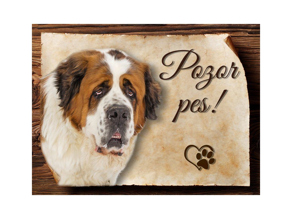 Cedulka Bernardýn II, hliníková s nápisem "Pozor pes!" Kovová výstražná venkovní cedulka oznamující to či ono, že se ve vašem obydlí může návštěvník setkat s vašim čtyřnohým miláčkem a jeho teritoriem. Velikosti těchto cedulek jsou 15x11,25 a 20x15 cm. Cedulky jsou tištěny sublimační technologií Grawerton přímo na plech. Cedulky dodáváme běžně se zakulacenými rohy. Pokud budete chtít na cedulku vlastní text, napište nám jej do poznámky.