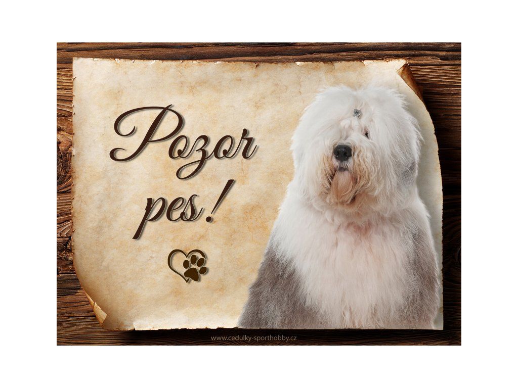 Cedulka s Bobtail, hliníková s nápisem "Pozor pes!" Kovová výstražná venkovní cedulka oznamující to či ono, že se ve vašem obydlí může návštěvník setkat s vašim čtyřnohým miláčkem a jeho teritoriem. Velikosti těchto cedulek jsou 15x11,25 a 20x15 cm a 27x20 cm. Cedulky jsou tištěny sublimační technologií Grawerton přímo na plech. Cedulky dodáváme běžně se zakulacenými rohy. Pokud budete chtít na cedulku vlastní text, napište nám jej do poznámky.