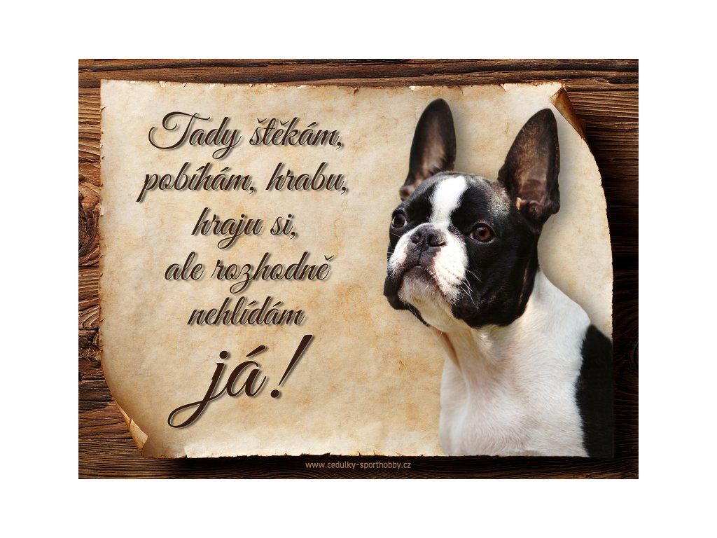 Cedulka Bostonský teriér- Tady štěkám .../CP1389