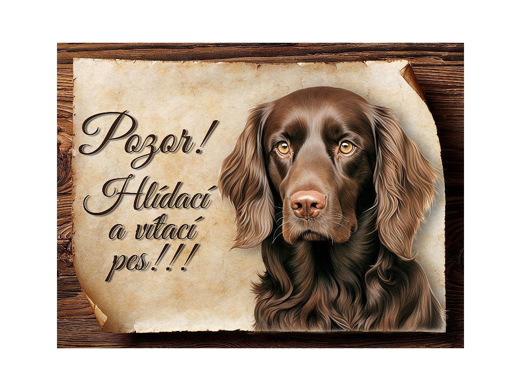 Cedulka s Boykin španěl, hliníková s nápisem "Pozor! Hlídací a vítací pes!" Kovová výstražná venkovní cedulka oznamující to či ono, že se ve vašem obydlí může návštěvník setkat s vašim čtyřnohým miláčkem a jeho teritoriem. Velikosti těchto cedulek jsou 15x11,25 a 20x15 a 27x20 cm. Cedulky jsou tištěny sublimační technologií Grawerton přímo na plech. Cedulky dodáváme běžně se zakulacenými rohy. Pokud budete chtít na cedulku vlastní text, napište nám jej do poznámky.