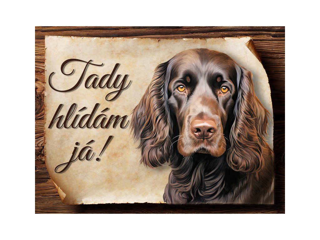 Cedulka s Field španěl I, hliníková s nápisem "Tady hlídám já!" Kovová výstražná venkovní cedulka oznamující to či ono, že se ve vašem obydlí může návštěvník setkat s vašim čtyřnohým miláčkem a jeho teritoriem. Velikosti těchto cedulek jsou 15x11,25 a 20x15 a 27x20 cm. Cedulky jsou tištěny sublimační technologií Grawerton přímo na plech. Cedulky dodáváme běžně se zakulacenými rohy. Pokud budete chtít na cedulku vlastní text, napište nám jej do poznámky.
