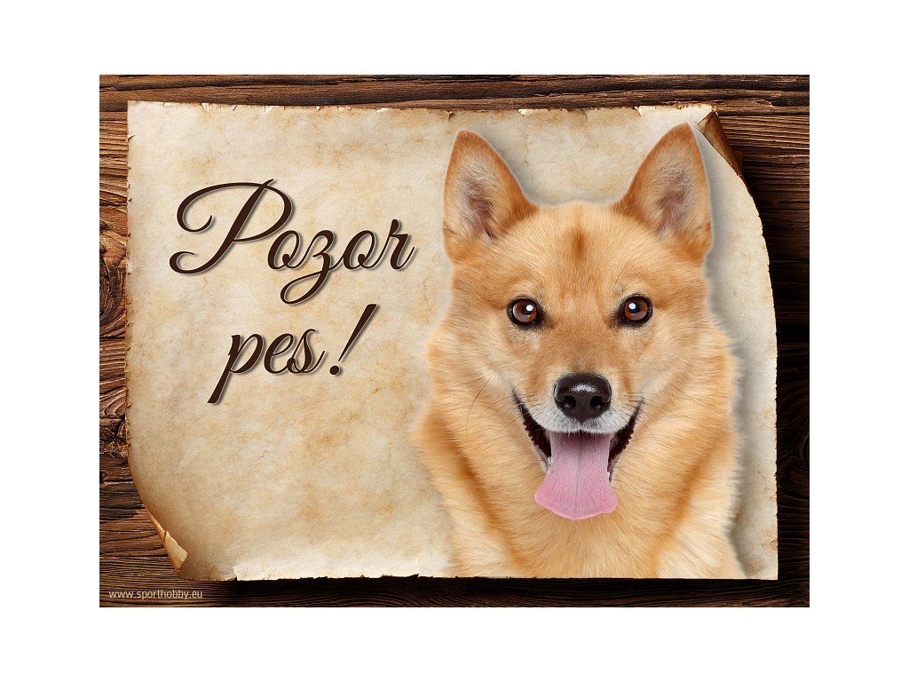 Cedulka s Finský špic, hliníková s nápisem "Pozor pes!" Kovová výstražná venkovní cedulka oznamující to či ono, že se ve vašem obydlí může návštěvník setkat s vašim čtyřnohým miláčkem a jeho teritoriem. Velikosti těchto cedulek jsou 15x11,25 a 20x15 cm. Cedulky jsou tištěny sublimační technologií Grawerton přímo na plech. Cedulky dodáváme běžně se zakulacenými rohy. Pokud budete chtít na cedulku vlastní text, napište nám jej do poznámky.
