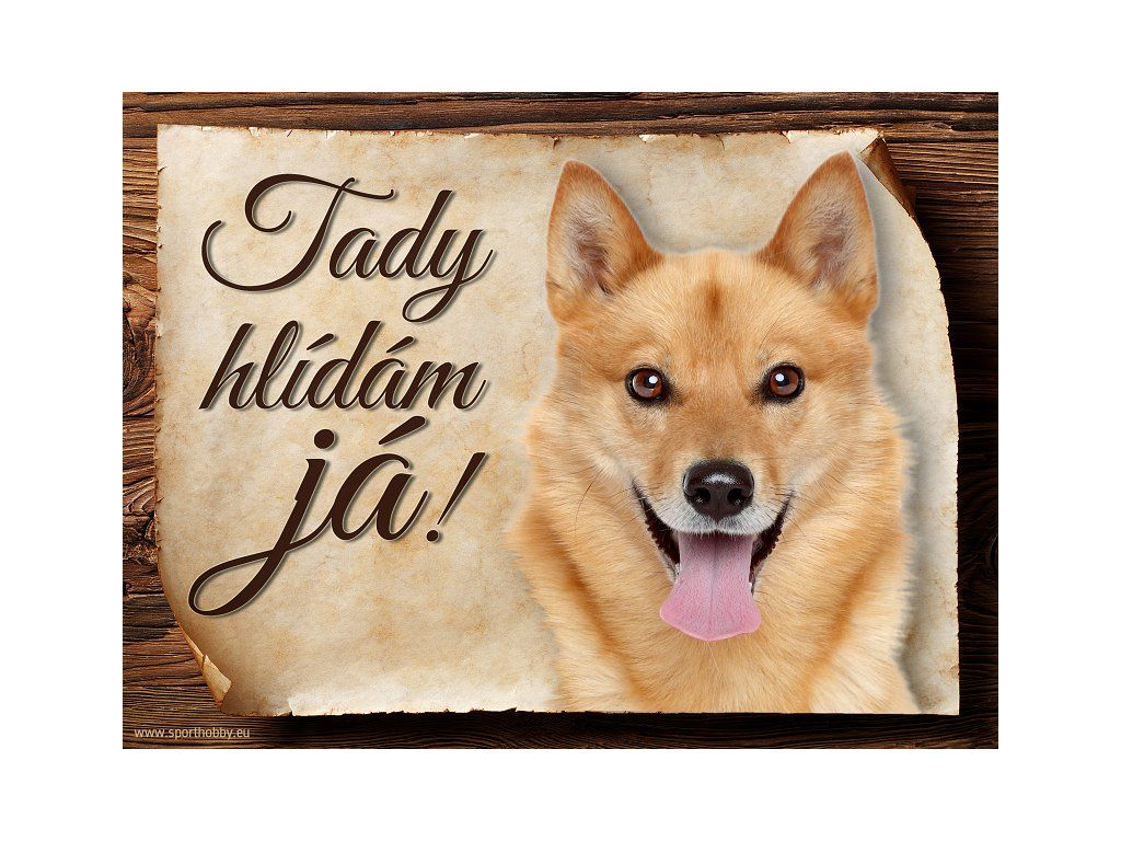 Cedulka Finský špic, hliníková s nápisem "Tady hlídám já!" Kovová výstražná venkovní cedulka oznamující to či ono, že se ve vašem obydlí může návštěvník setkat s vašim čtyřnohým miláčkem a jeho teritoriem. Velikosti těchto cedulek jsou 15x11,25 a 20x15 cm. Cedulky jsou tištěny sublimační technologií Grawerton přímo na plech. Cedulky dodáváme běžně se zakulacenými rohy. Pokud budete chtít na cedulku vlastní text, napište nám jej do poznámky.