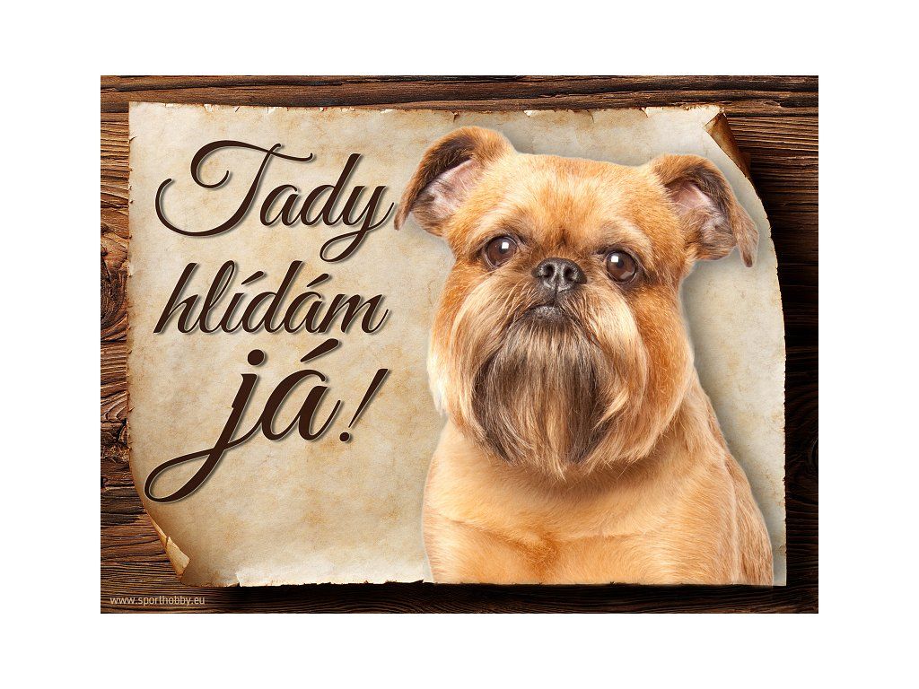 Cedulka Grifonek, hliníková s nápisem "Tady hlídám já!" Kovová výstražná venkovní cedulka oznamující to či ono, že se ve vašem obydlí může návštěvník setkat s vašim čtyřnohým miláčkem a jeho teritoriem. Velikosti těchto cedulek jsou 15x11,25 a 20x15 cm. Cedulky jsou tištěny sublimační technologií Grawerton přímo na plech. Cedulky dodáváme běžně se zakulacenými rohy. Pokud budete chtít na cedulku vlastní text, napište nám jej do poznámky.