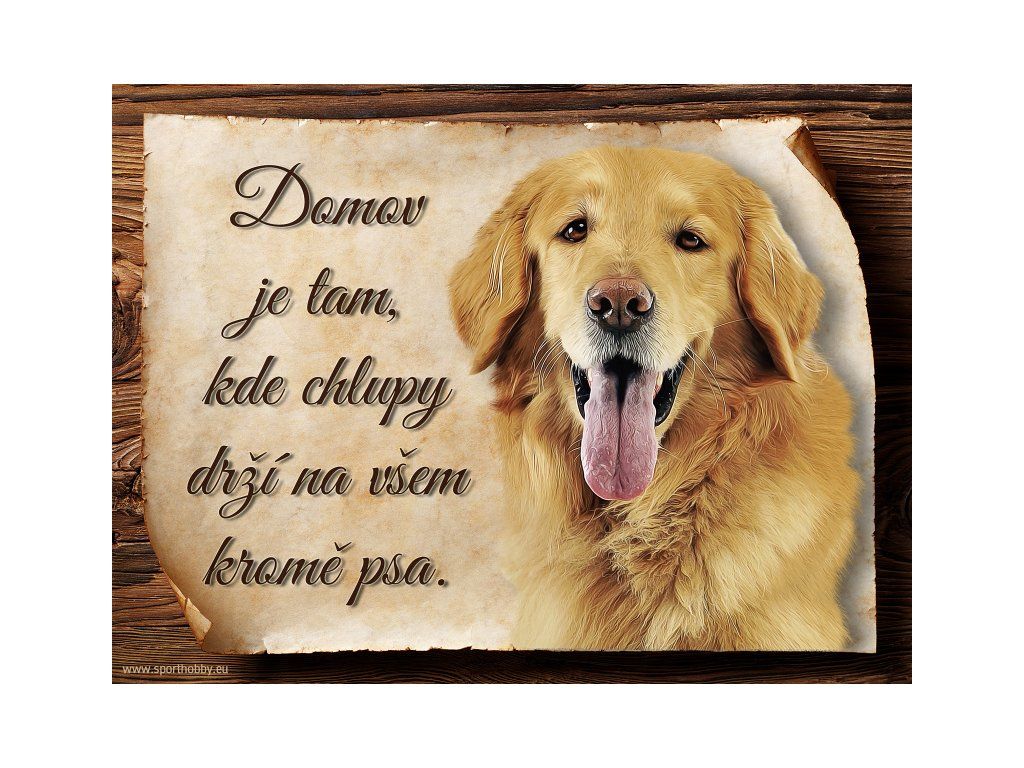 Cedulka s Hovawart III, hliníková s nápisem "Domov je tam, kde chlupy drží na všem kromě psa." Kovová výstražná venkovní cedulka oznamující to či ono, že se ve vašem obydlí může návštěvník setkat s vašim čtyřnohým miláčkem a jeho teritoriem. Velikosti těchto cedulek jsou 15x11,25, 20x15 cm a 27x20. Cedulky jsou tištěny sublimační technologií Grawerton přímo na plech. Cedulky dodáváme běžně se zakulacenými rohy. Pokud budete chtít na cedulku vlastní text, napište nám jej do poznámky.