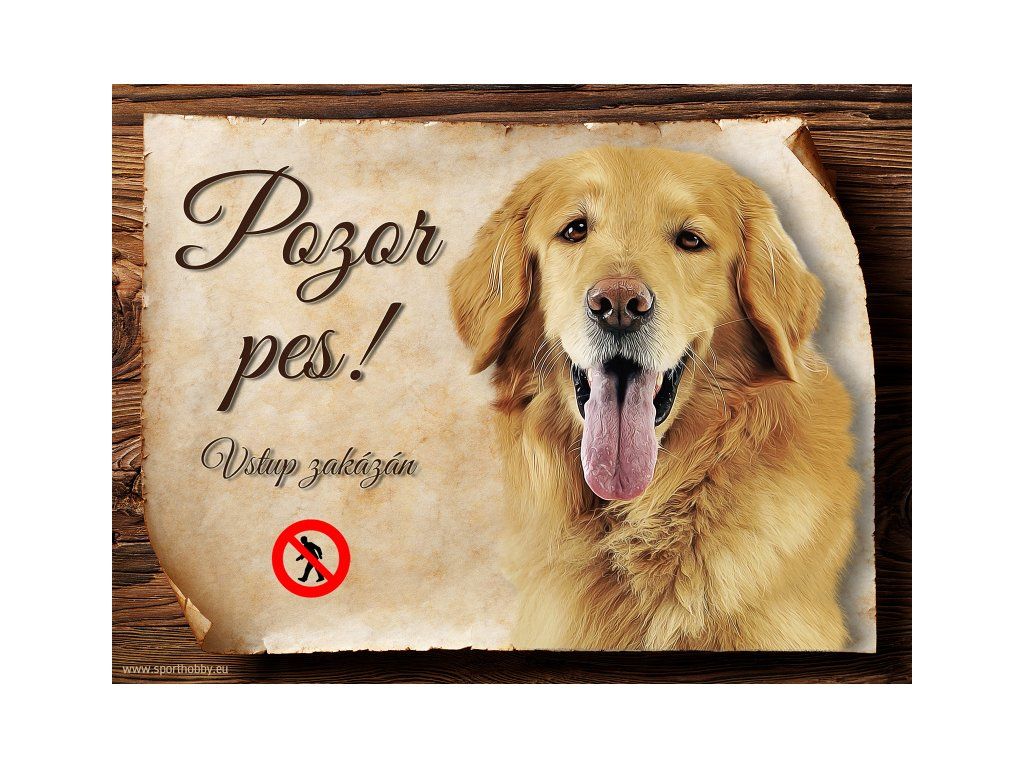 Cedulka s Hovawart III, hliníková s nápisem "Pozor pes! Vstup zakázán!" Kovová výstražná venkovní cedulka oznamující to či ono, že se ve vašem obydlí může návštěvník setkat s vašim čtyřnohým miláčkem a jeho teritoriem. Velikosti těchto cedulek jsou 15x11,25, 20x15 cm a 27x20. Cedulky jsou tištěny sublimační technologií Grawerton přímo na plech. Cedulky dodáváme běžně se zakulacenými rohy. Pokud budete chtít na cedulku vlastní text, napište nám jej do poznámky.