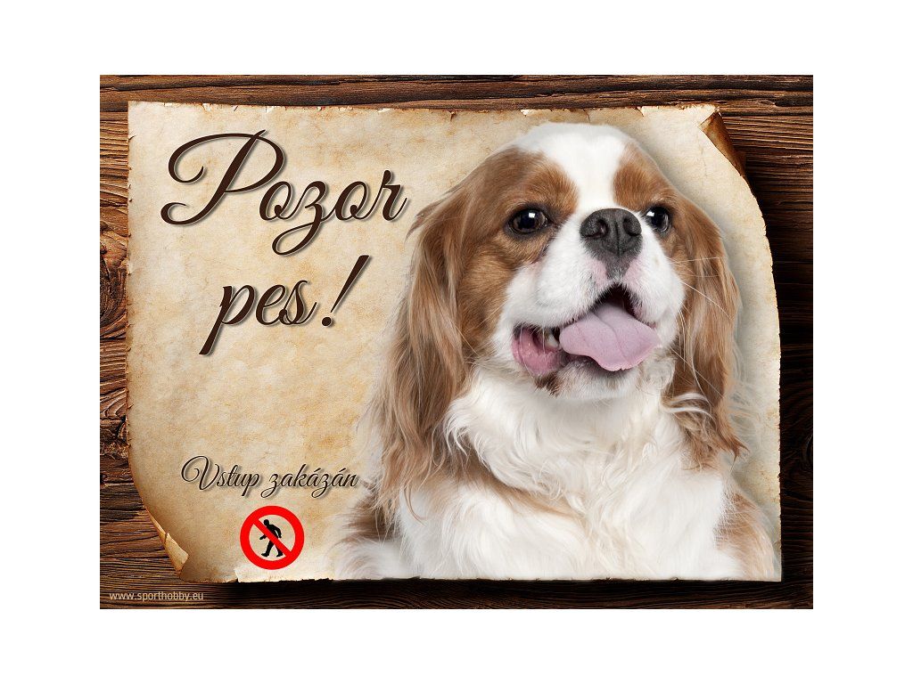 Cedulka Kavalír King Charles španěl - Pozor pes zákaz/CP676