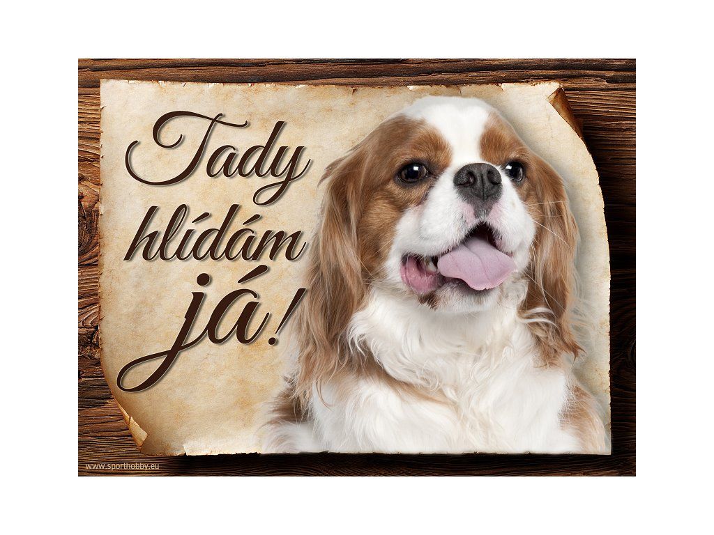 Cedulka Kavalír King Charles španěl, hliníková s nápisem "Tady hlídám já!" Kovová výstražná venkovní cedulka oznamující to či ono, že se ve vašem obydlí může návštěvník setkat s vašim čtyřnohým miláčkem a jeho teritoriem. Velikosti těchto cedulek jsou 15x11,25 a 20x15 cm. Cedulky jsou tištěny sublimační technologií Grawerton přímo na plech. Cedulky dodáváme běžně se zakulacenými rohy. Pokud budete chtít na cedulku vlastní text, napište nám jej do poznámky.