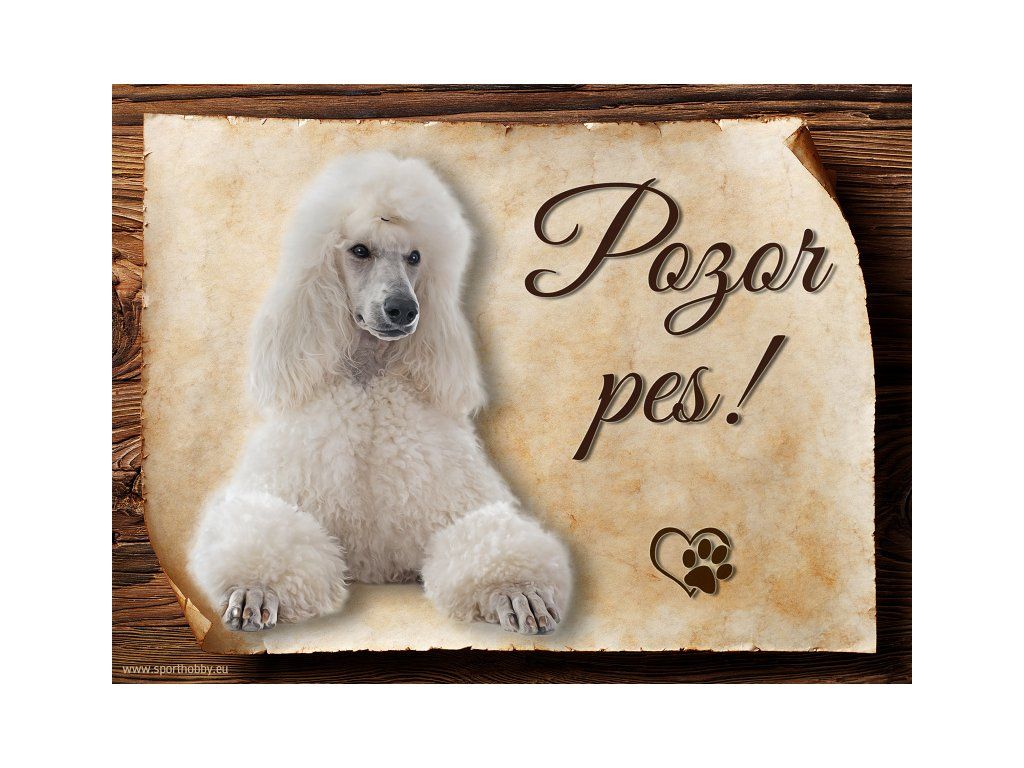 Cedulka s Pudl I, hliníková s nápisem "Pozor pes!" Kovová výstražná venkovní cedulka oznamující to či ono, že se ve vašem obydlí může návštěvník setkat s vašim čtyřnohým miláčkem a jeho teritoriem. Velikosti těchto cedulek jsou 15x11,25 a 20x15 cm. Cedulky jsou tištěny sublimační technologií Grawerton přímo na plech. Cedulky dodáváme běžně se zakulacenými rohy. Pokud budete chtít na cedulku vlastní text, napište nám jej do poznámky.