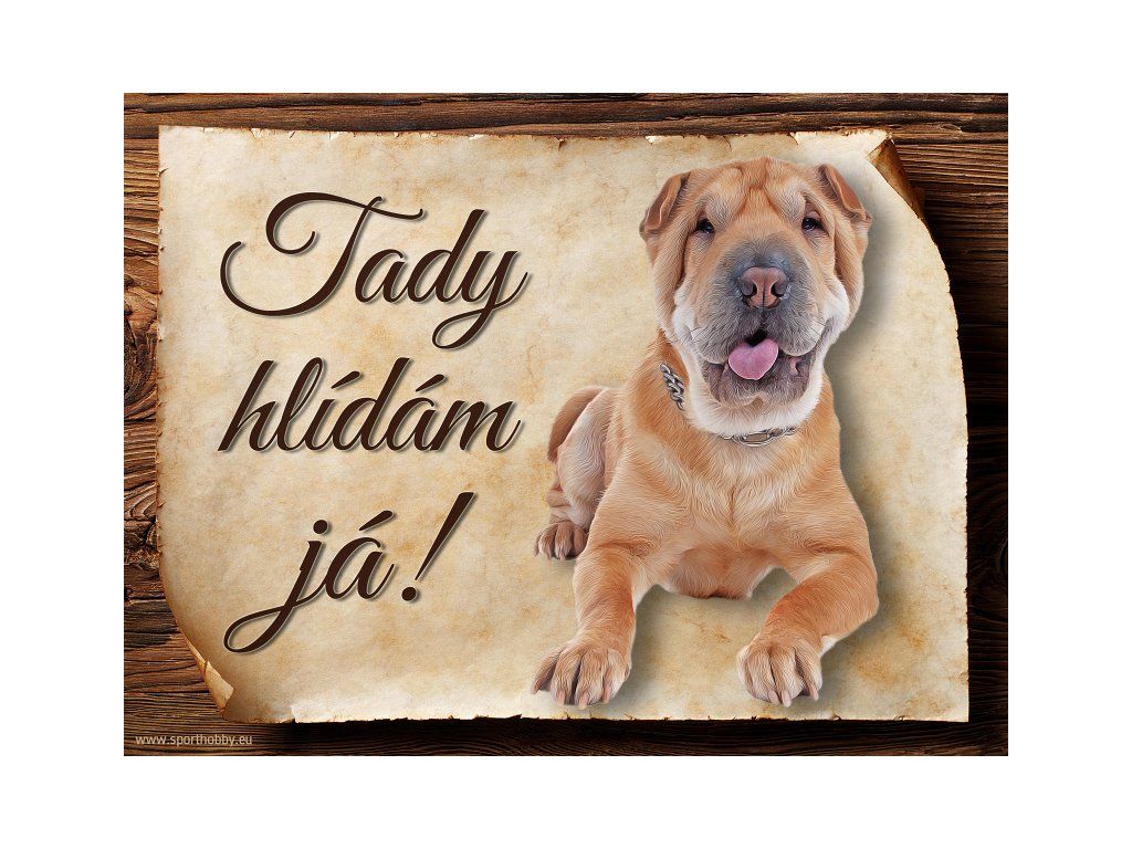 Cedulka s Šarpej, hliníková s nápisem "Tady hlídám já!" Kovová výstražná venkovní cedulka oznamující to či ono, že se ve vašem obydlí může návštěvník setkat s vašim čtyřnohým miláčkem a jeho teritoriem. Velikosti těchto cedulek jsou 15x11,25 a 20x15 cm. Cedulky jsou tištěny sublimační technologií Grawerton přímo na plech. Cedulky dodáváme běžně se zakulacenými rohy. Pokud budete chtít na cedulku vlastní text, napište nám jej do poznámky.