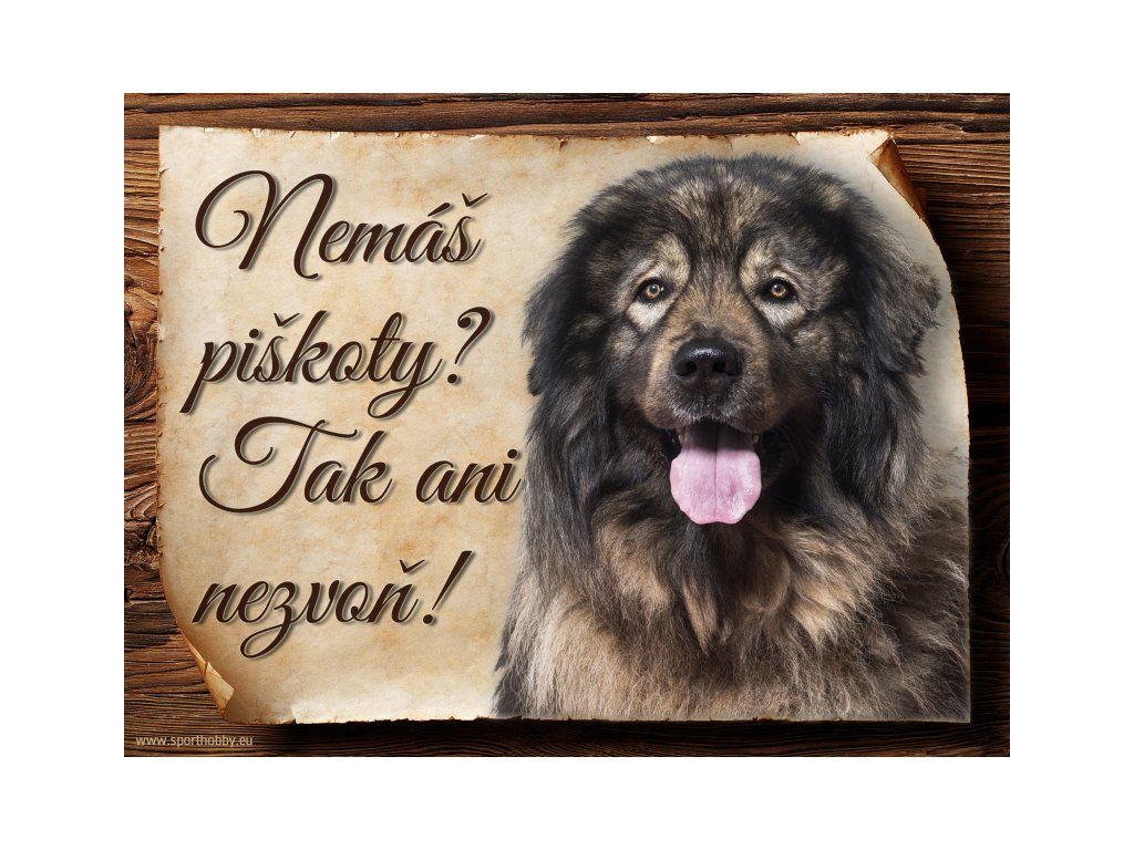 Cedulka s Šarplaninský pastevecký pes, hliníková s nápisem "Nemáš piškoty? Tak ani nezvoň!" Kovová výstražná venkovní cedulka oznamující to či ono, že se ve vašem obydlí může návštěvník setkat s vašim čtyřnohým miláčkem a jeho teritoriem. Velikosti těchto cedulek jsou 15x11,25 a 20x15 cm. Cedulky jsou tištěny sublimační technologií Grawerton přímo na plech. Cedulky dodáváme běžně se zakulacenými rohy. Pokud budete chtít na cedulku vlastní text, napište nám jej do poznámky.