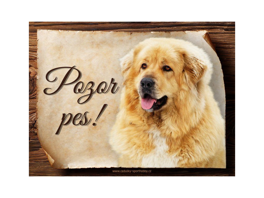 Cedulka Tibetská doga, hliníková s nápisem "Pozor pes!" Kovová výstražná venkovní cedulka oznamující to či ono, že se ve vašem obydlí může návštěvník setkat s vašim čtyřnohým miláčkem a jeho teritoriem. Velikosti těchto cedulek jsou 15x11,25 a 20x15 cm. Cedulky jsou tištěny sublimační technologií Grawerton přímo na plech. Cedulky dodáváme běžně se zakulacenými rohy. Pokud budete chtít na cedulku vlastní text, napište nám jej do poznámky.