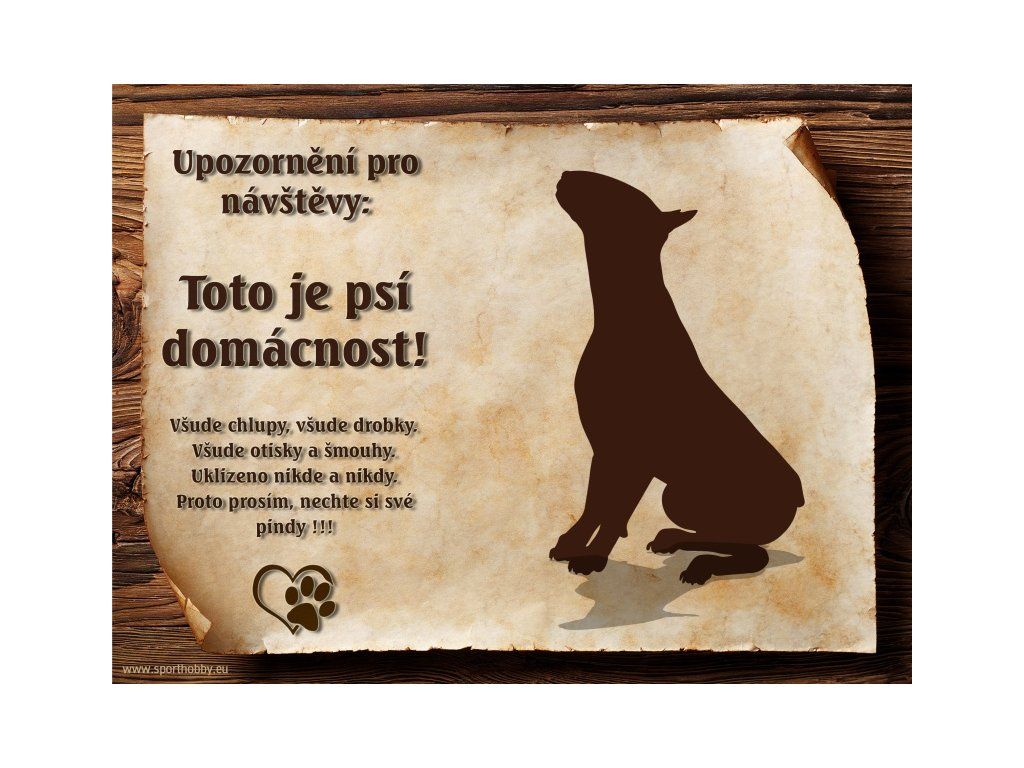 Vtipná cedulka s nápisem. Kovová výstražná venkovní cedulka oznamující to či ono, že se ve vašem obydlí může návštěvník setkat s vašim čtyřnohým miláčkem a jeho teritoriem. Velikosti těchto cedulek jsou 15x11,25 a 20x15 a 26,7x20 cm. Cedulky jsou tištěny sublimační technologií Grawerton přímo na plech. Cedulky dodáváme běžně se zakulacenými rohy. Pokud budete chtít na cedulku vlastní text, napište nám jej do poznámky. Zde můžete objednávat cedulku s motivem vašeho psa. Fotografii pošlete e-mailem s číslem objednávky. Fotografie zasílejte ve formátu JPG, PDF, TIF apod. pokud možno v lepší kvalitě. Úpravu - "vyříznutí" z pozadí můžete nechat na nás.