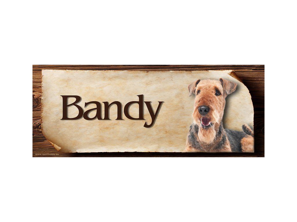 Jmenovka na vchodové dveře, schránku, plot, a nebo dokonce se jménem psa na kotec, boudu apod. s vyobrazením Airedale terrier