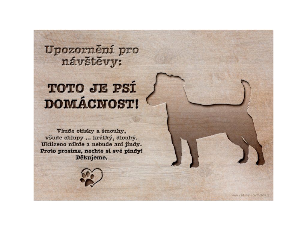 Vtipná cedulka s nápisem "Psí domácnost ...". Kovová cedulka s potiskem. Velikosti této cedulky je 18x12,8 cm. Cedulky jsou tištěny sublimační technologií Grawerton přímo na plech.