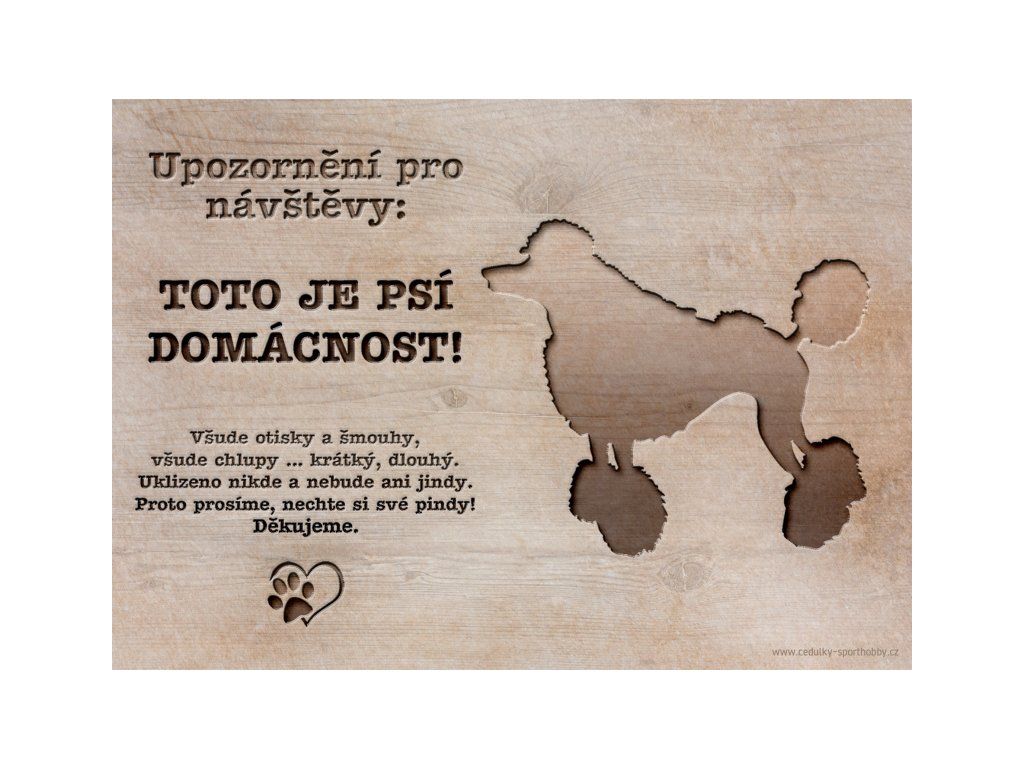 Vtipná cedulka s nápisem "Psí domácnost ...". Kovová cedulka s potiskem. Velikosti této cedulky je 18x12,8 cm. Cedulky jsou tištěny sublimační technologií Grawerton přímo na plech.