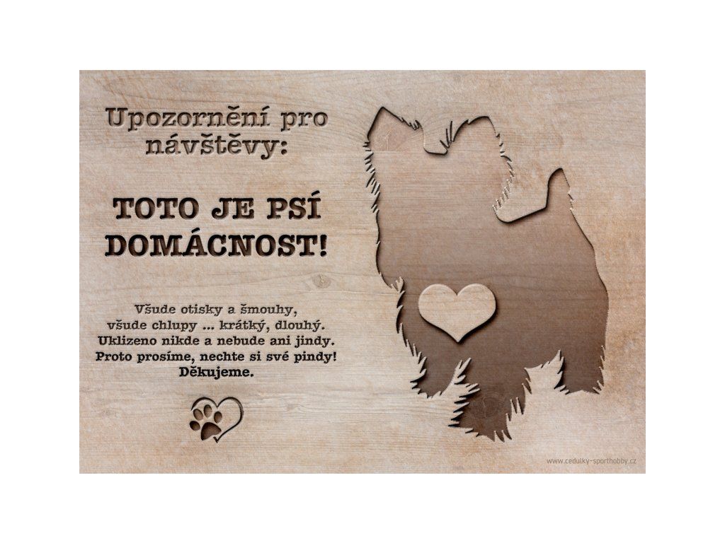 Vtipná cedulka s nápisem "Psí domácnost ...". Kovová cedulka s potiskem. Velikosti této cedulky je 18x12,8 cm. Cedulky jsou tištěny sublimační technologií Grawerton přímo na plech.