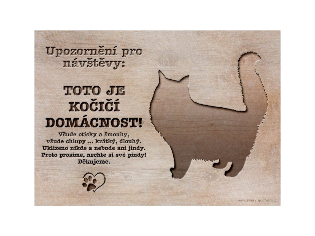Vtipná cedulka s nápisem "Kočičí domácnost ...". Kovová cedulka s potiskem. Velikosti této cedulky je 18x12,8 cm. Cedulky jsou tištěny sublimační technologií Grawerton přímo na plech.